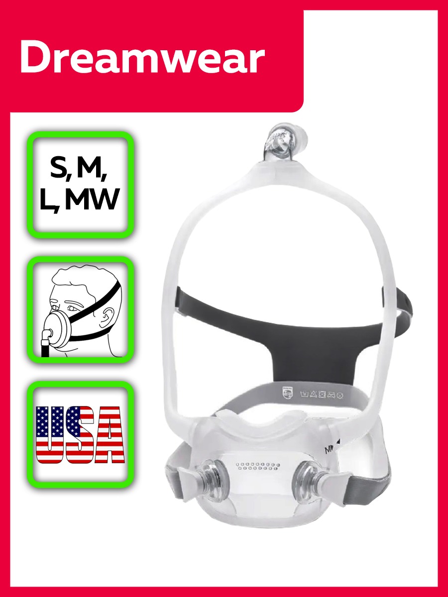 Рото-носовая маска Dreamwear 4-х размеров (S, M, L, MW) | Максимальный комфорт и индивидуальная посадка