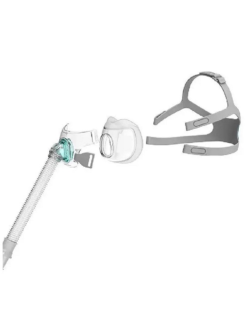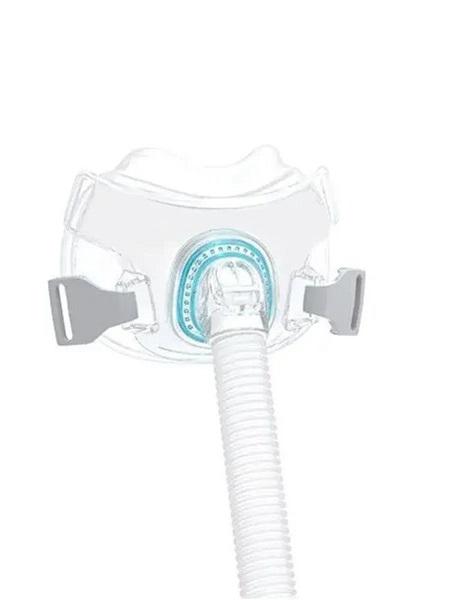 О: Главное отличие — подушка расположена под носом, а не охватывает переносицу. Это исключает давление на кость и делает маску более компактной.
