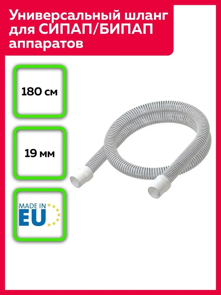 Универсальный шланг для СИПАП/БИПАП аппаратов, производства HUM (Германия). Шланг используется для неинвазивной респираторной терапии дома или больнице. Трубка соединяет различных компоненты системы СИПАП, таких как маски и аппараты, обеспечивая подачу воздуха или отводу конденсата Для одного пациента. Многократного использования.